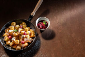Karamellisierter Grießschmarrnca. 5 Portionen Zutaten:900 ml Milch100 g Butter10 g VanillezuckerPrise SalzZitronenabrieb von einer ¼ Zitrone180 g Grieß6 Eier (getrennt)180 g Kristallzucker50 g Butter (zum Karamellisieren)50 g Zucker (zum Karamellisieren)300…
