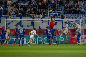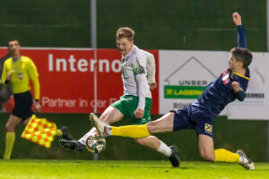 Es entwickelte sich von Anfang eine temporeiche und intensive Partie im Hofmann Personal Stadion – ein ausgeglichener Spielverlauf nach einer Viertelstunde mit einer nennenswerten Aktion der Gäste – Havel verstolperte…