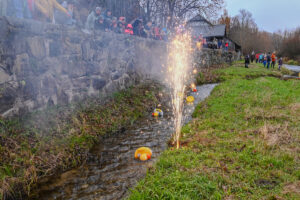 Beim traditionellen Ganslrennen in Zwettl an der Rodl verwandelte sich der Bachlauf in ein buntes Entenrennen. Mehr als 20 gelbe Gummientchen wurden zu Wasser gelassen und kämpften sich durch Strömungen…
